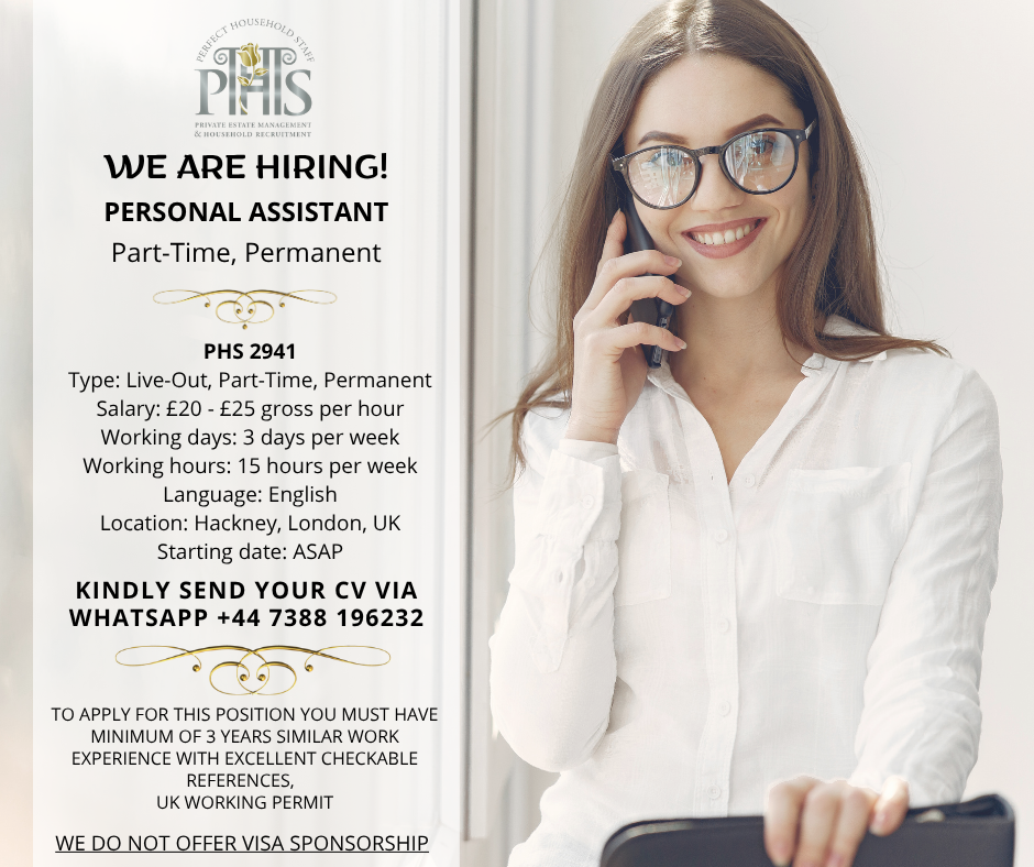 We are offering an exciting Part-Time Personal Assistant (PA) job in London. Join a prestigious household and advance your private PA career today – apply now!